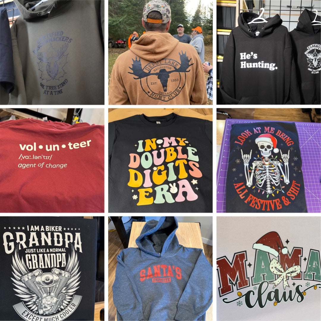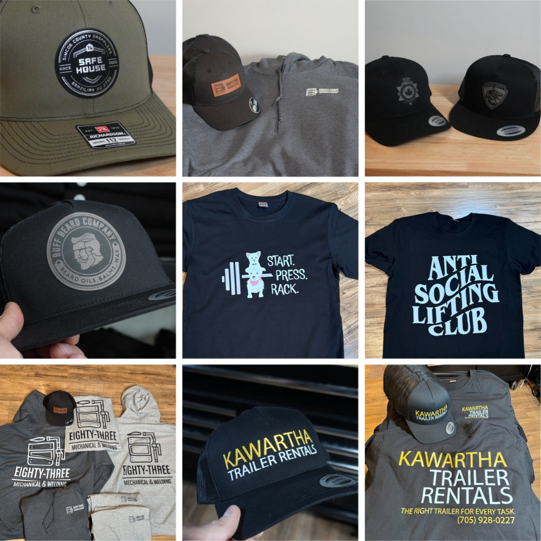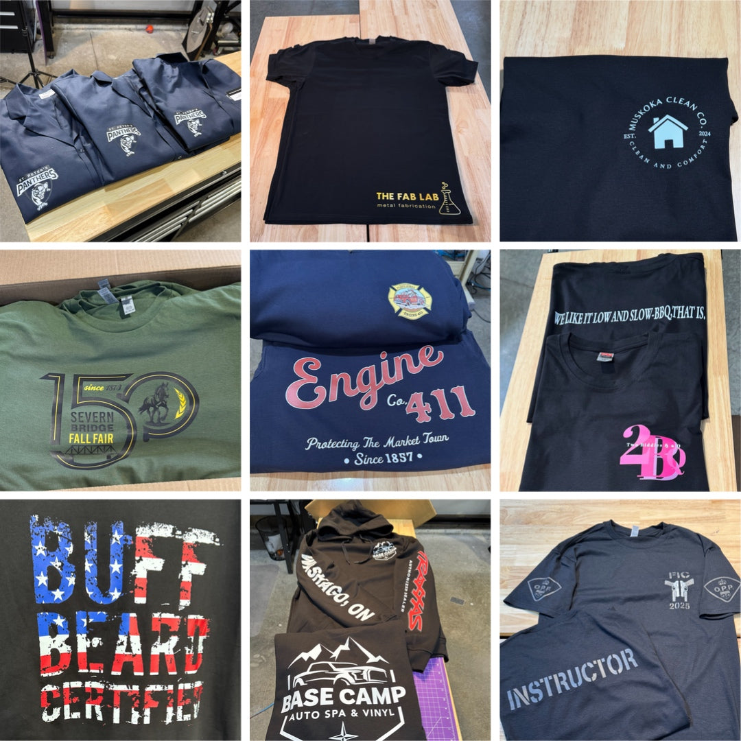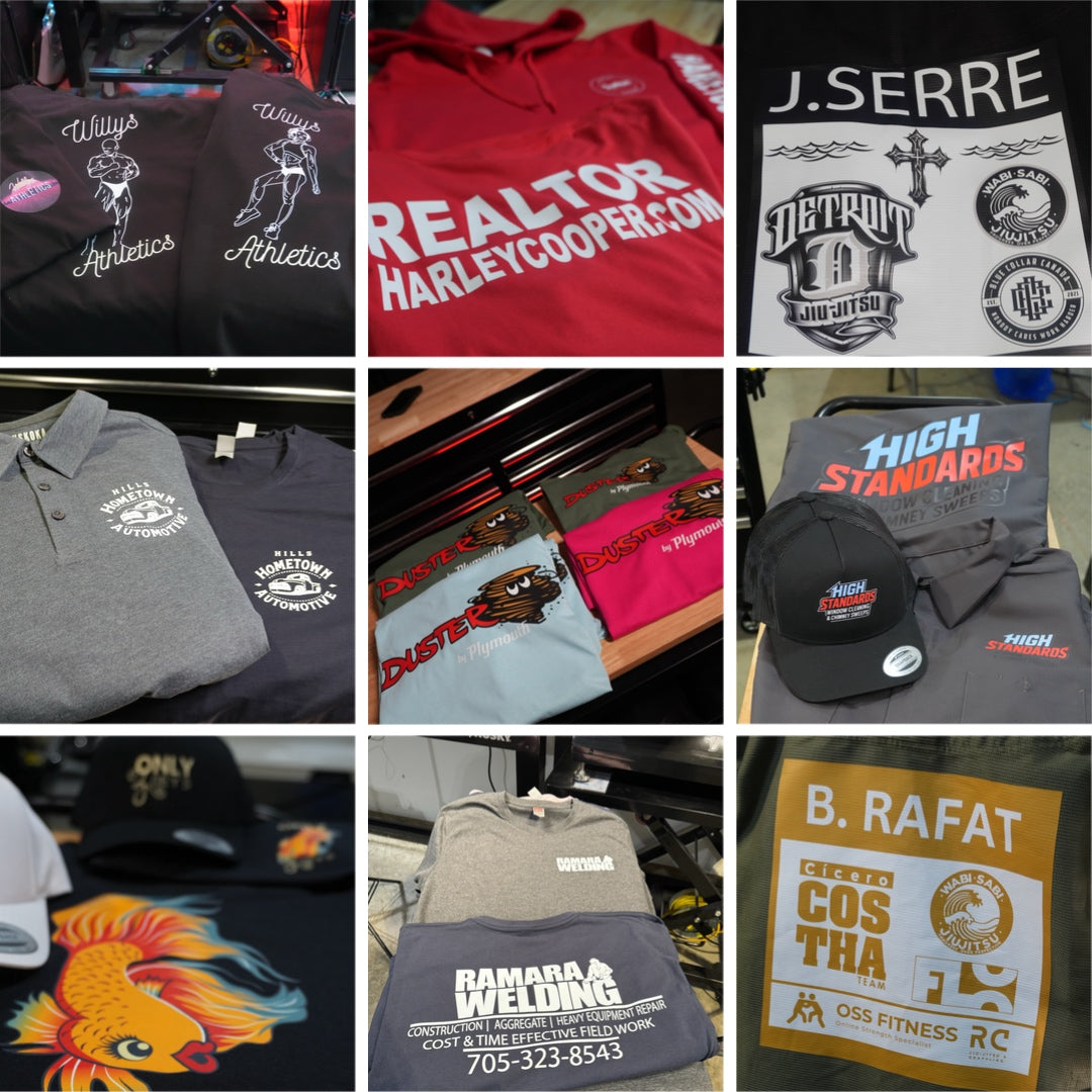 Explore our custom apparel gallery featuring past projects for small businesses, trades, brands, and events. From DTF-printed hoodies and tees to custom logo hats, Northbound Apparel Co. brings your vision to life with no minimums and fair pricing.
